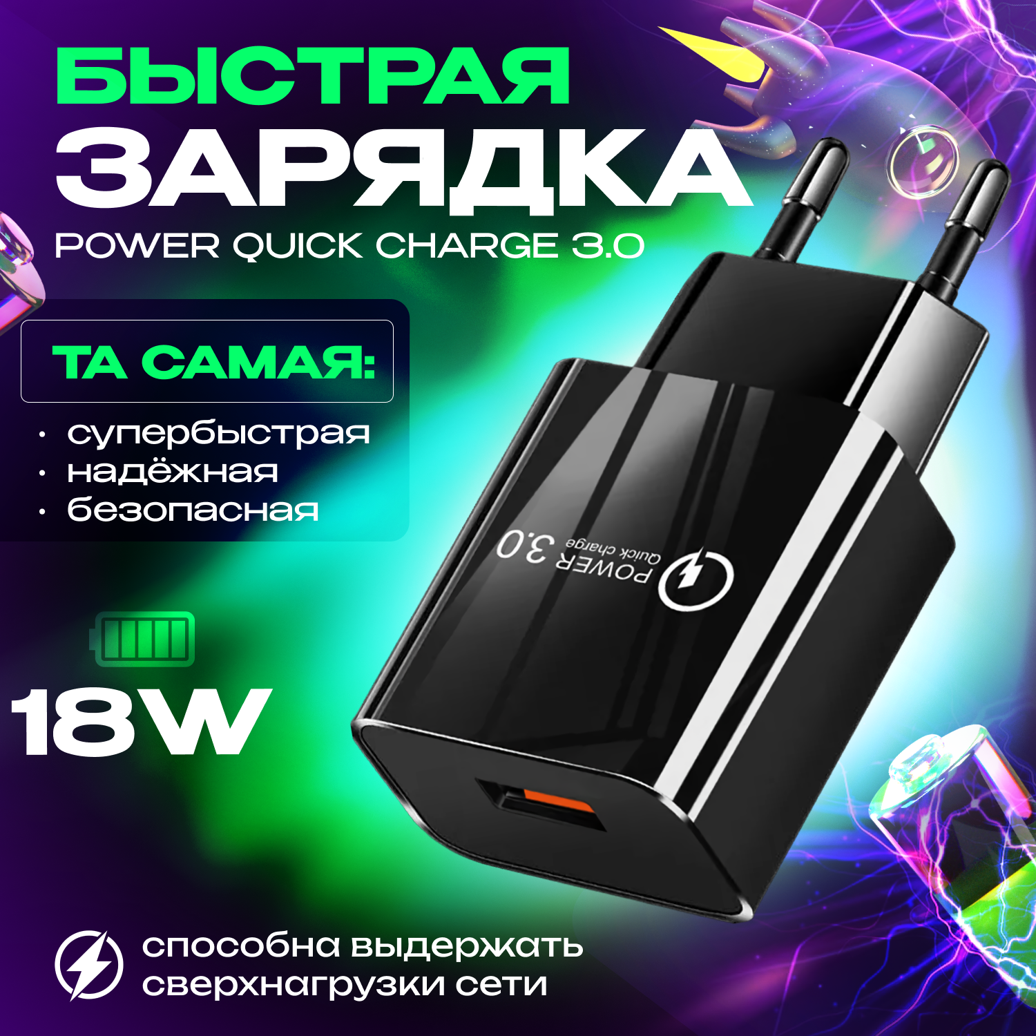 Быстрая зарядка для телефона Quick Charge 3.0, 18W, 3A / Сетевой блок питания для Samsung, Xiaomi, Huawei, iPhone /черный цвет информация: