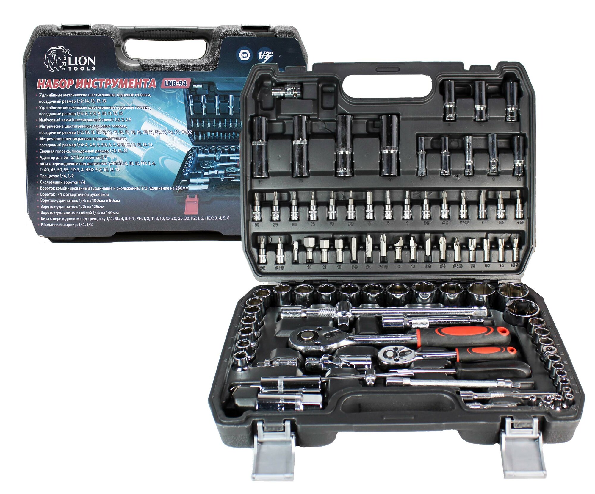 10 цен на Набор инструментов LION 94 предмета 6 гран. 1/4, 1/2"DR LNB-94