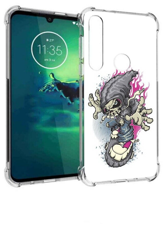 Отзывы на Чехол задняя-панель-накладка-бампер MyPads нарисованный скелет на скейт борде для Motorola Moto G8 Plus противоударный
