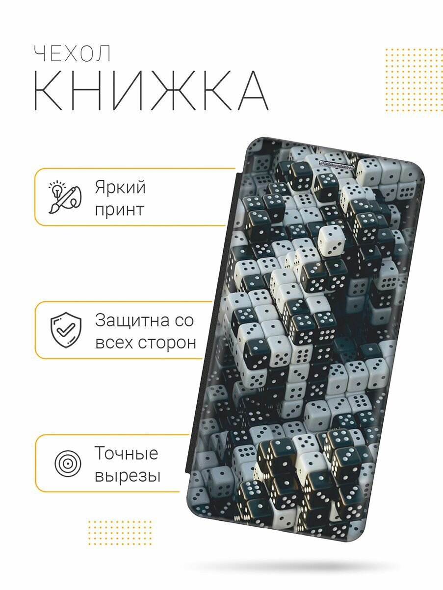 Чехол-книжка на Samsung Galaxy J2 Core / Самсунг Джей 2 Кор c принтом "Игральные кости" черный информация: