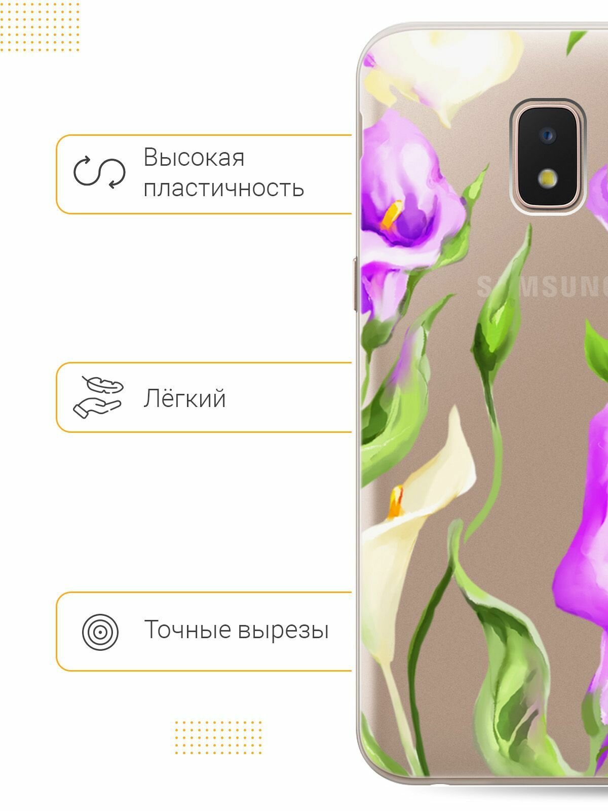 Отзывы на Силиконовый чехол на Samsung Galaxy J2 Core / Самсунг Джей 2 Кор с 3D принтом "Amazing Callas" прозрачный
