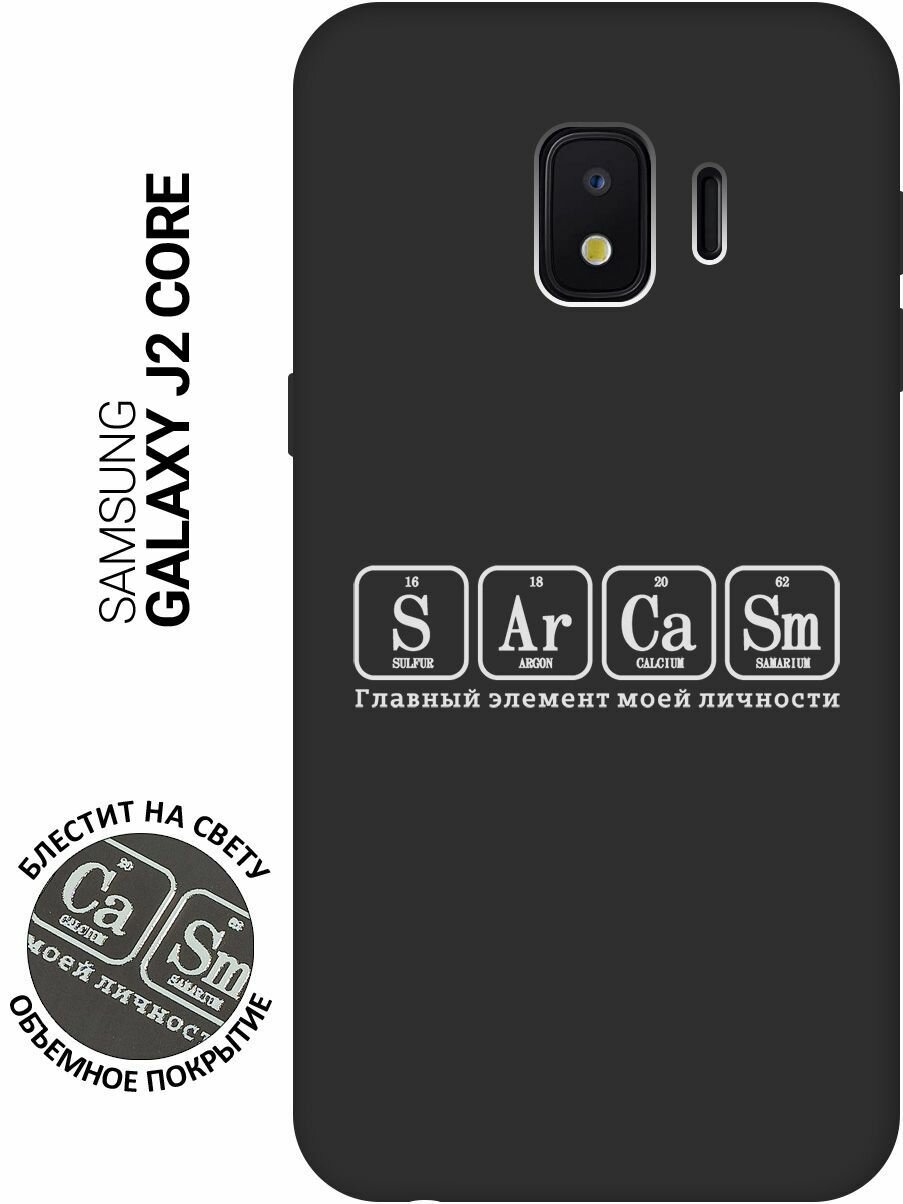 Матовый Soft Touch силиконовый чехол на Samsung Galaxy J2 Core, Самсунг Джей 2 Кор с 3D принтом "Sarcasm Element W" черный 513 ₽