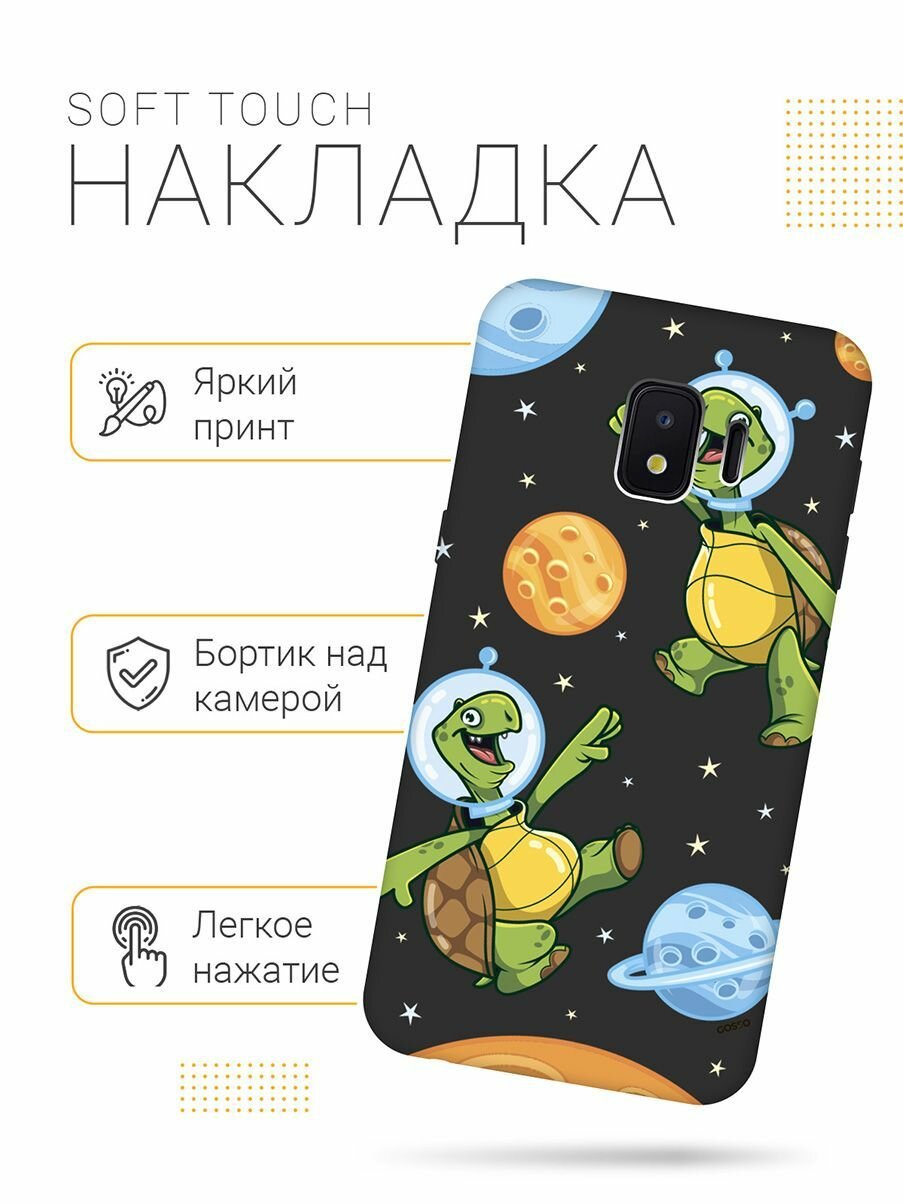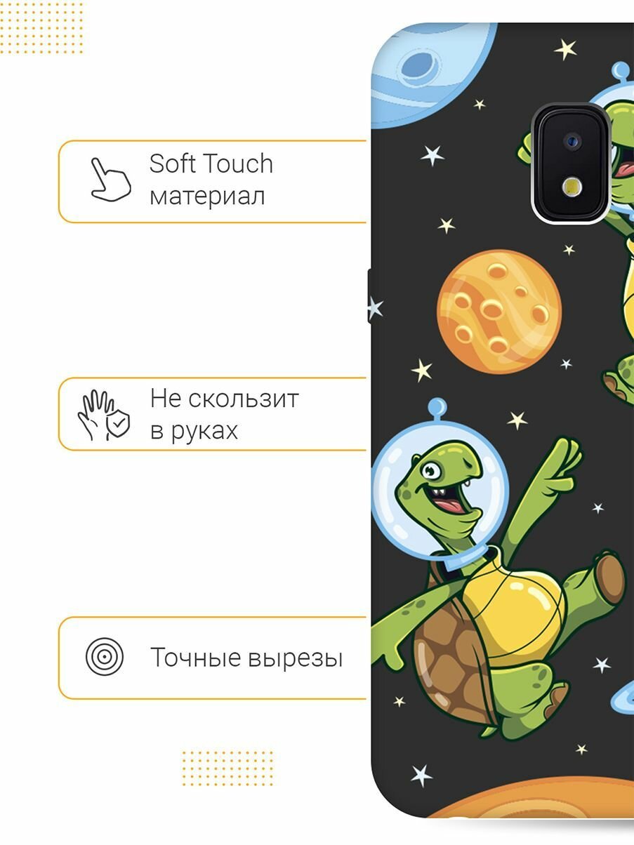 Матовый Soft Touch силиконовый чехол на Samsung Galaxy J2 Core / Самсунг Джей 2 Кор с 3D принтом "CosmoTurtles" черный информация: