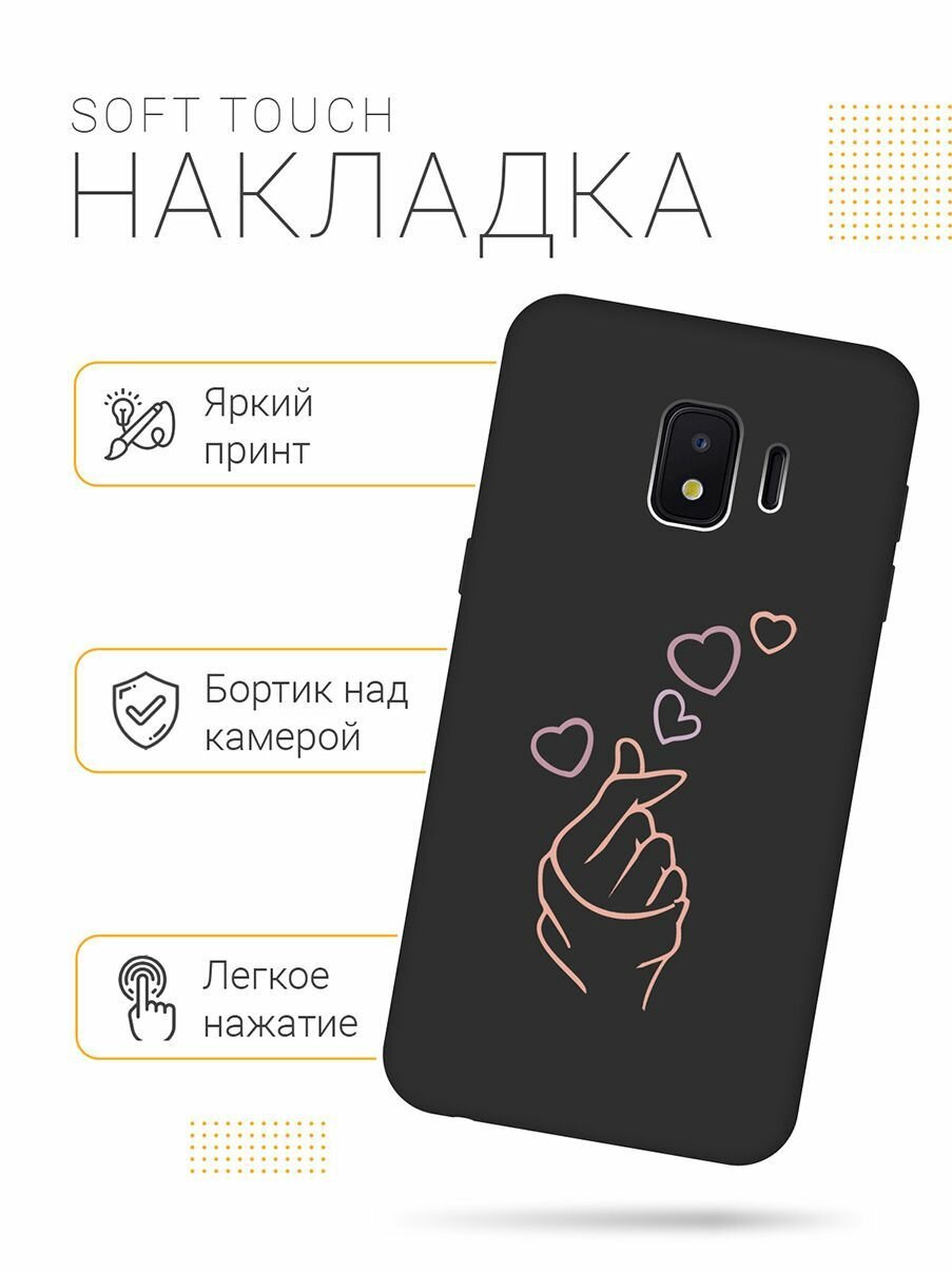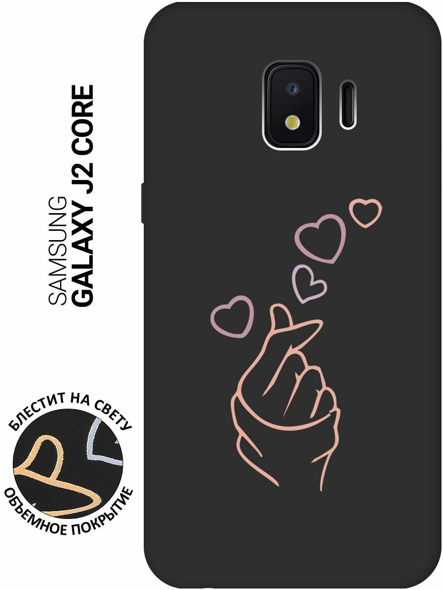 Матовый Soft Touch силиконовый чехол на Samsung Galaxy J2 Core / Самсунг Джей 2 Кор с 3D принтом "K-Heart" черный информация: