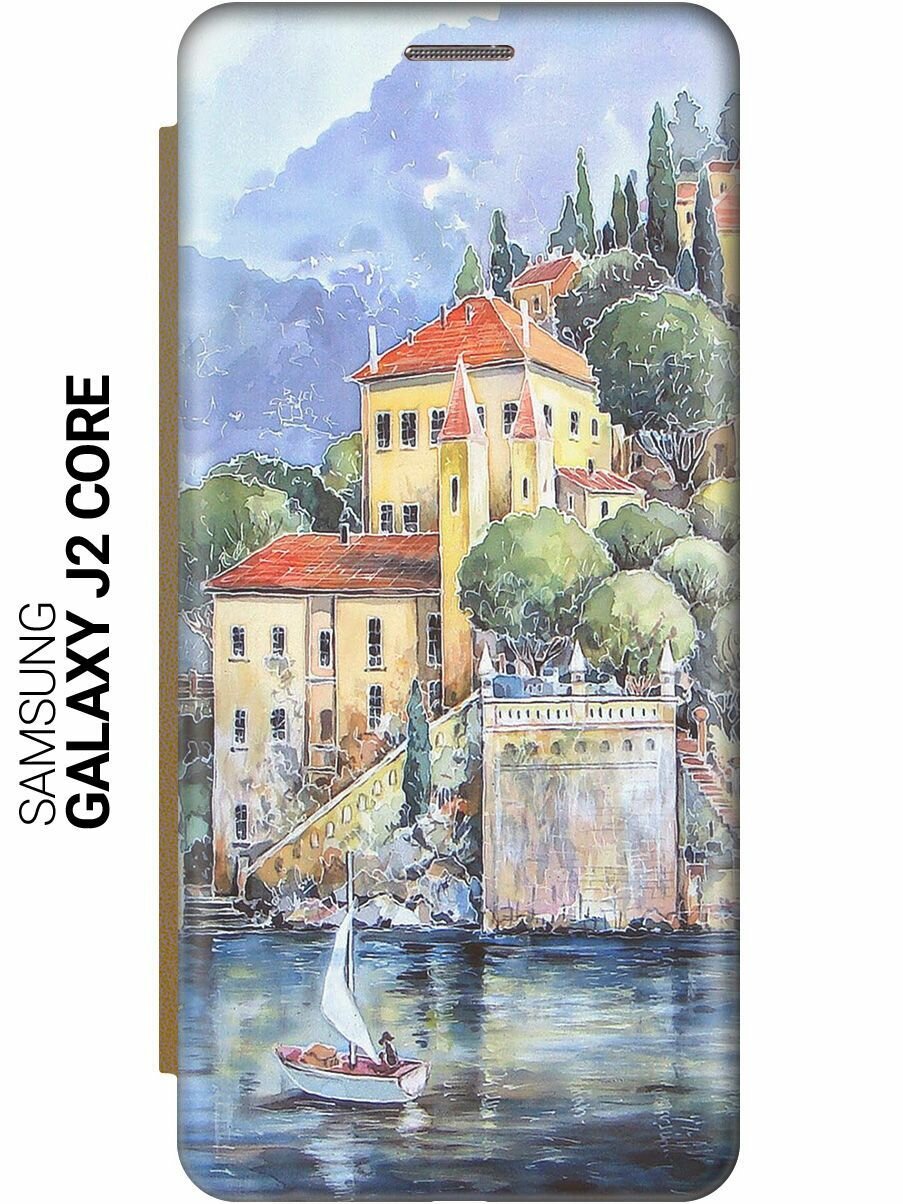 Чехол-книжка на Samsung Galaxy J2 Core / Самсунг Джей 2 Кор c принтом "Город у моря" золотистый информация: