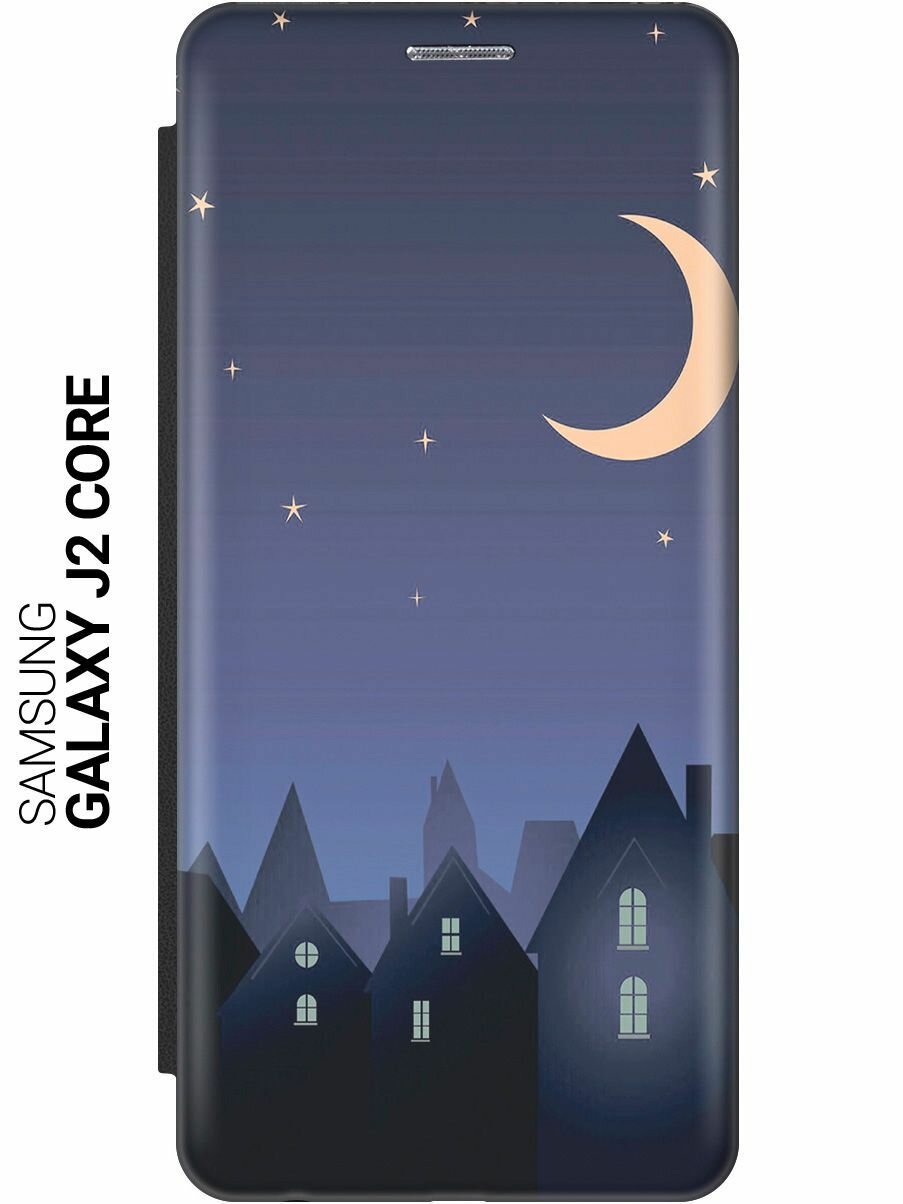 Чехол-книжка на Samsung Galaxy J2 Core, Самсунг Джей 2 Кор c принтом "Месяц над городом" черный 807 ₽