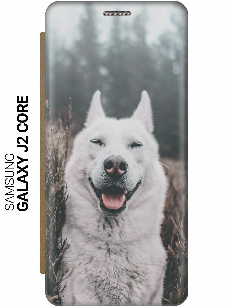 Чехол-книжка на Samsung Galaxy J2 Core / Самсунг Джей 2 Кор c принтом "Довольный пес" золотистый информация: