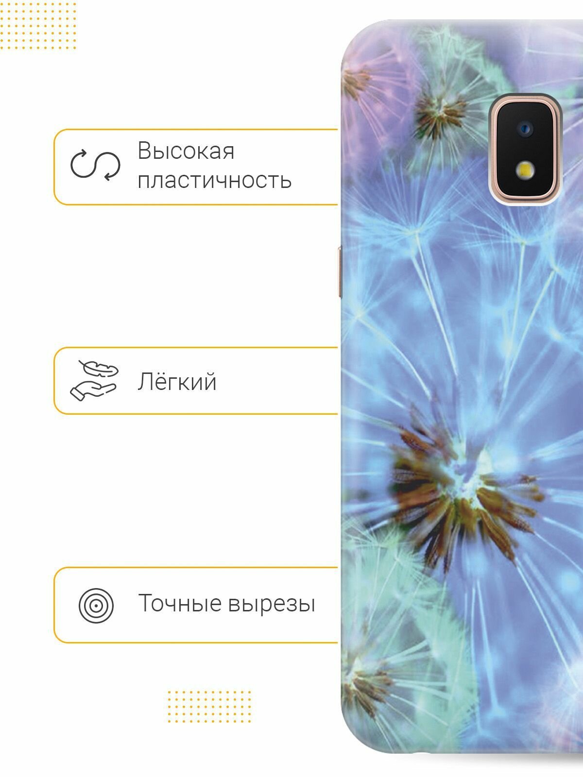 Отзывы на Силиконовый чехол на Samsung Galaxy J2 Core / Самсунг Джей 2 Кор с принтом "Макро одуванчики"