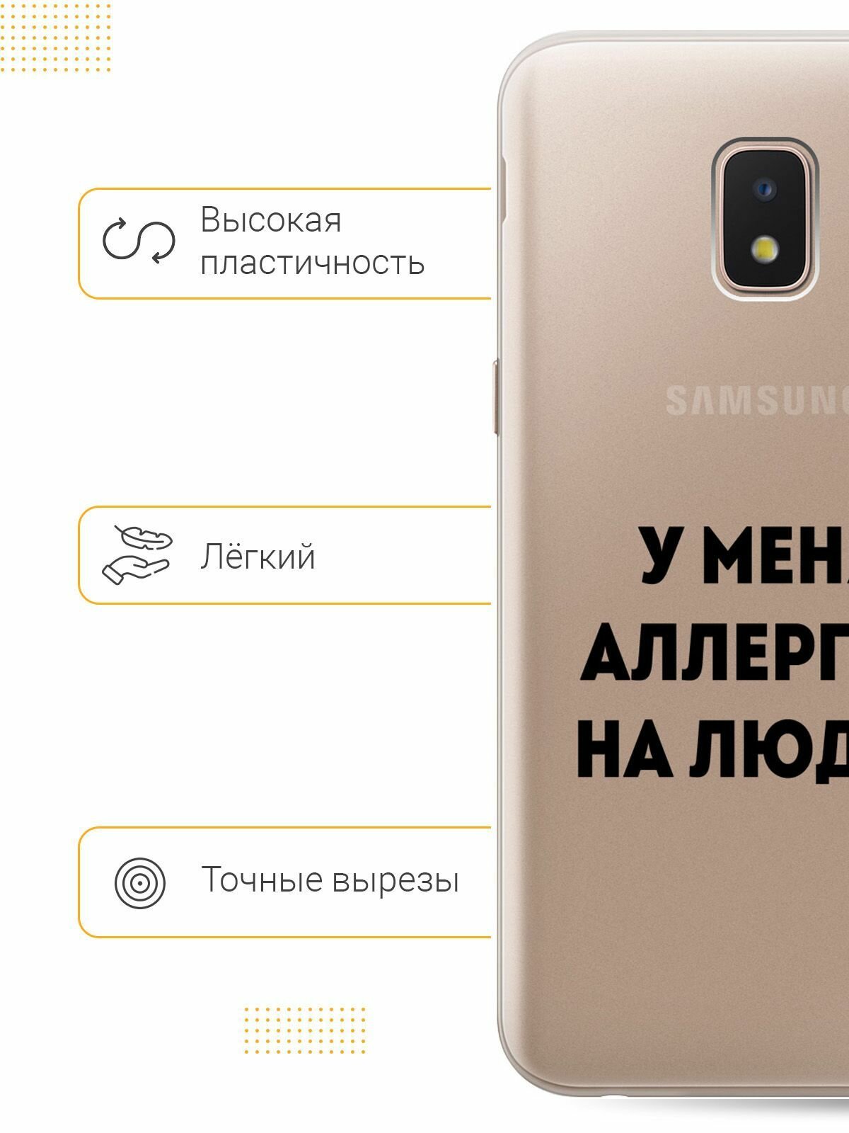 Отзывы на Силиконовый чехол на Samsung Galaxy J2 Core / Самсунг Джей 2 Кор с 3D принтом "Allergy" прозрачный