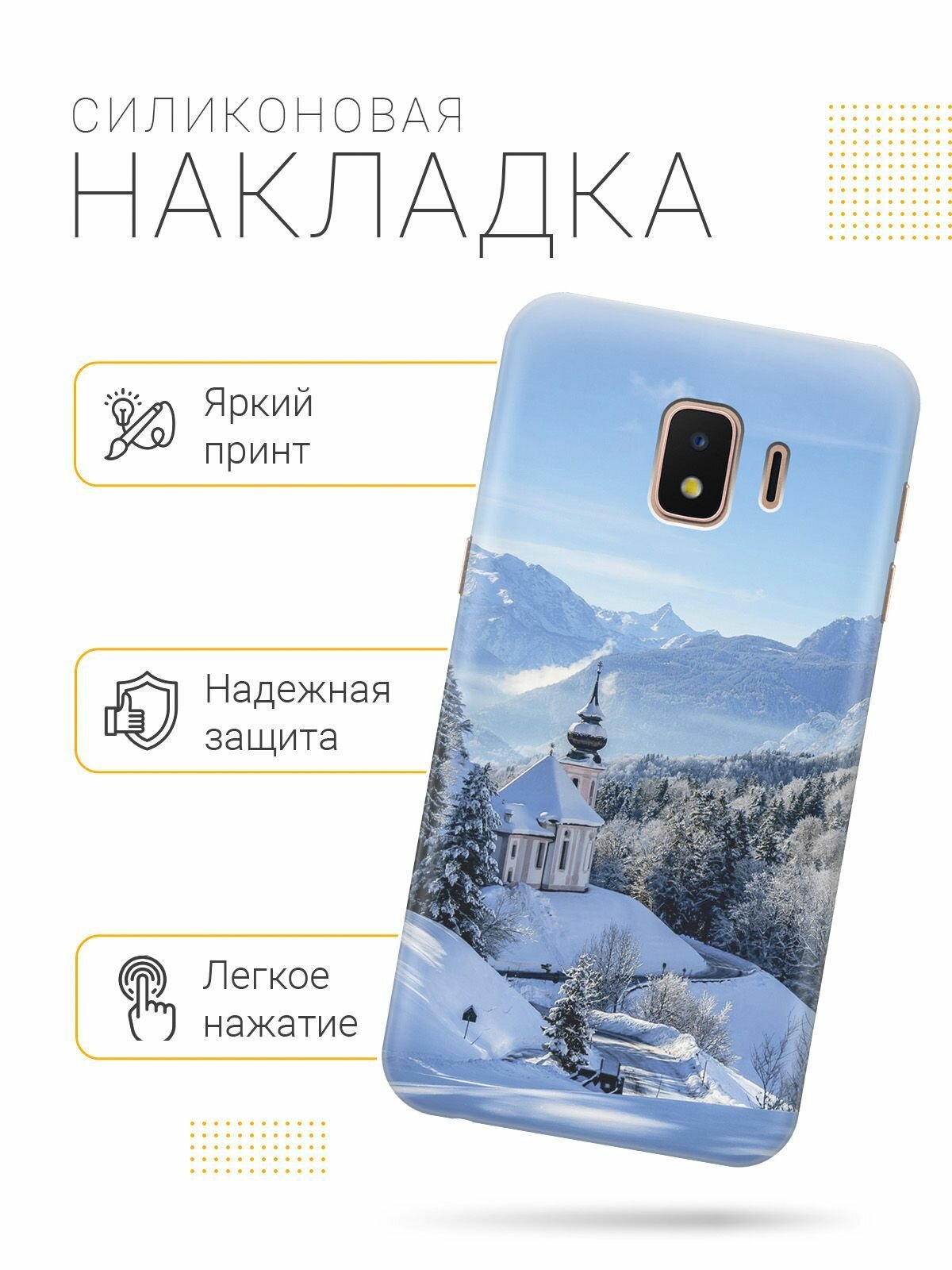 Отзывы на Силиконовый чехол на Samsung Galaxy J2 Core / Самсунг Джей 2 Кор с принтом "Заснеженные горы"