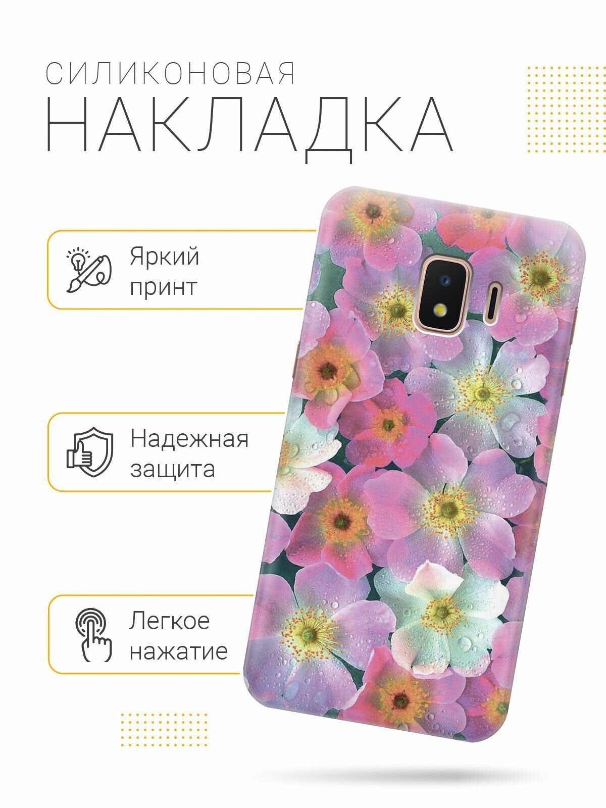 10 цен на Силиконовый чехол на Samsung Galaxy J2 Core / Самсунг Джей 2 Кор с принтом "Розовые фиалки"