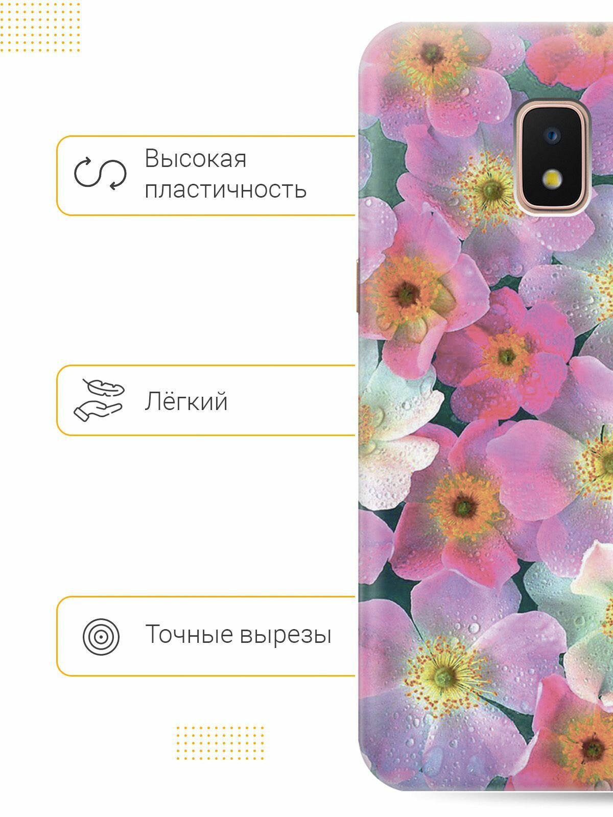 Силиконовый чехол на Samsung Galaxy J2 Core / Самсунг Джей 2 Кор с принтом "Розовые фиалки" информация: