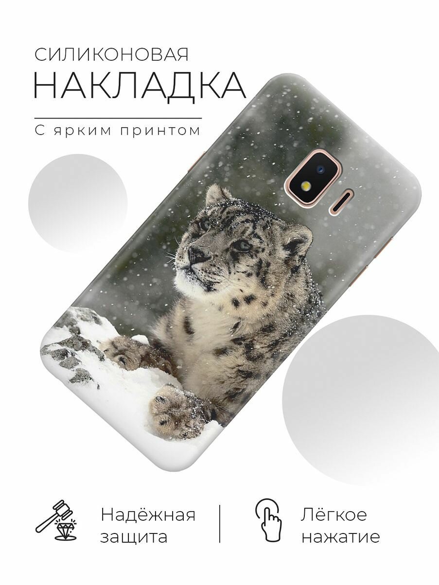 Силиконовый чехол Барс и падающий снег на Samsung Galaxy J2 Core / Самсунг Джей 2 Кор информация: