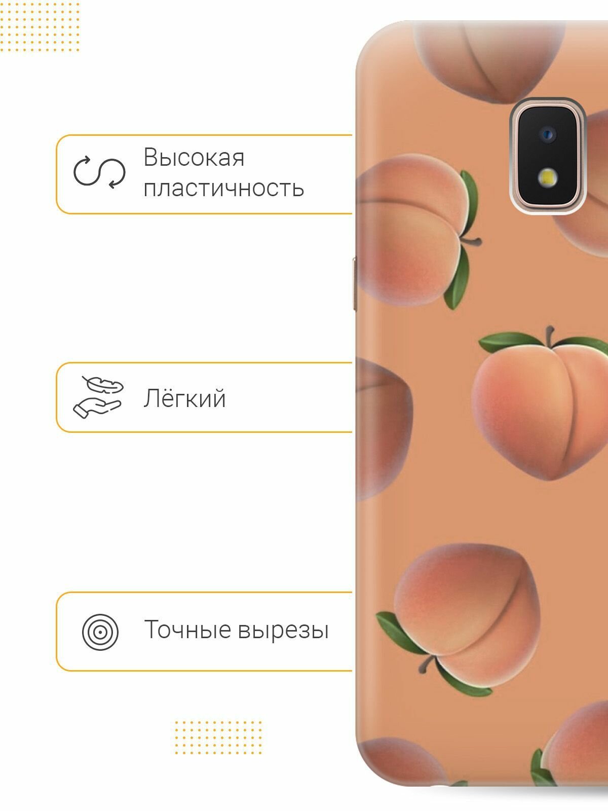 Отзывы на Силиконовый чехол на Samsung Galaxy J2 Core / Самсунг Джей 2 Кор с принтом "Падающие персики"