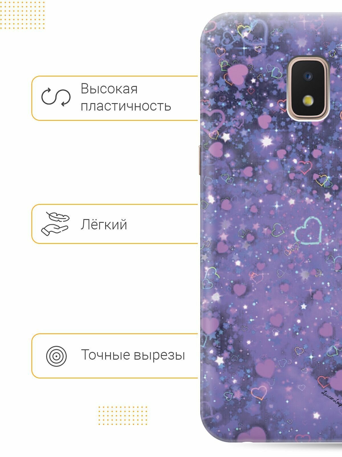 Отзывы на Силиконовый чехол на Samsung Galaxy J2 Core / Самсунг Джей 2 Кор с эффектом блеска "Магические сердечки"