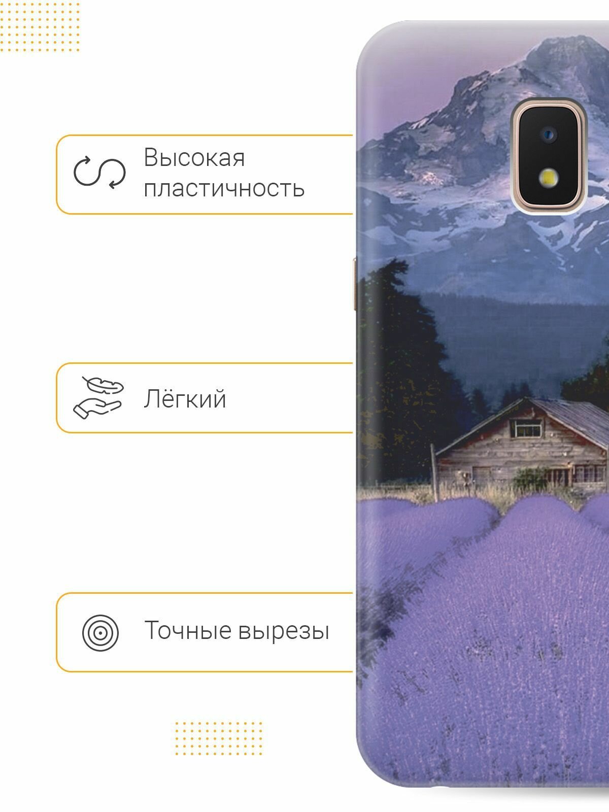 Отзывы на Силиконовый чехол на Samsung Galaxy J2 Core / Самсунг Джей 2 Кор с принтом "Лавандовое поле в горах"
