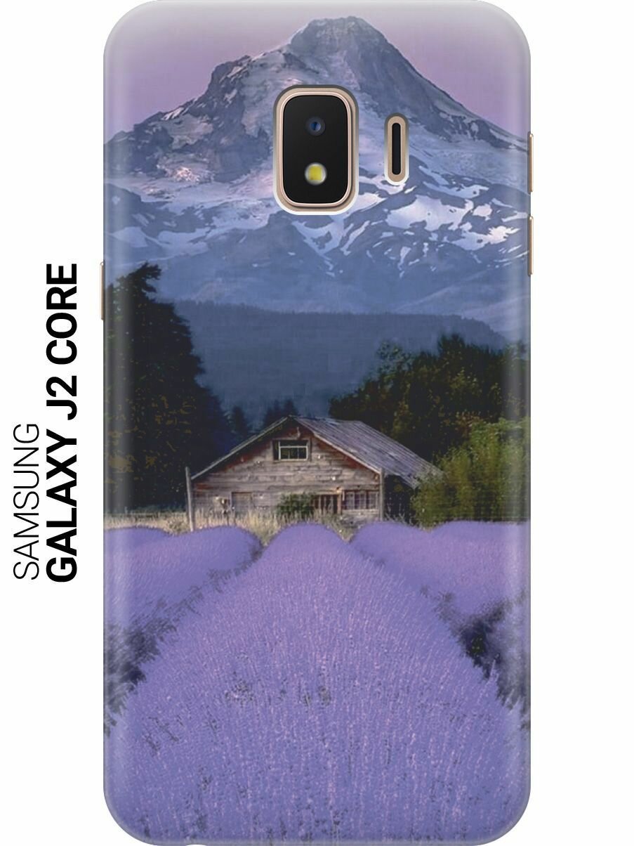 Силиконовый чехол на Samsung Galaxy J2 Core / Самсунг Джей 2 Кор с принтом "Лавандовое поле в горах" информация: