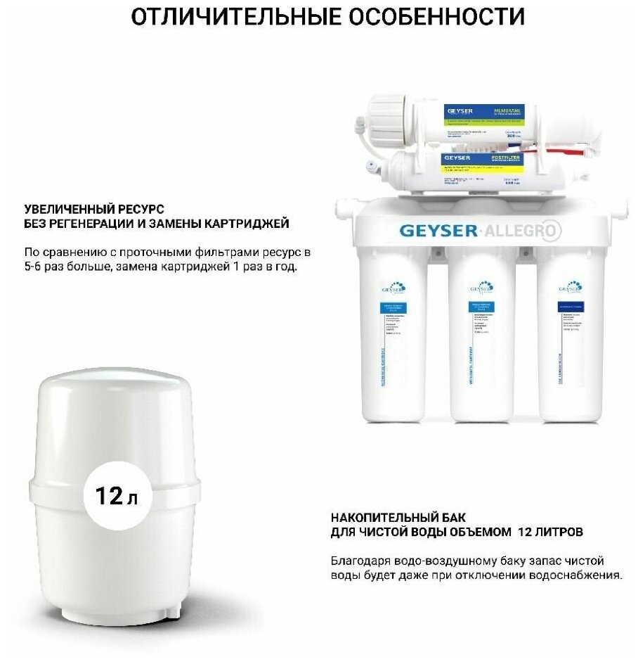 Фильтр Гейзер Аллегро Без крана Система обратный осмос информация:
