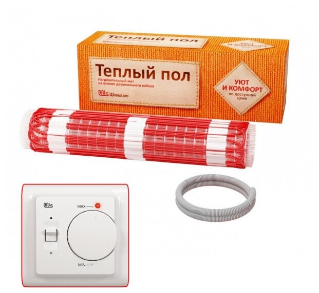 Комплект "Теплый пол" (мат) WSM 910Вт/6.00кв. м Warmstad 2206169 с теромрегулятором механическим белый