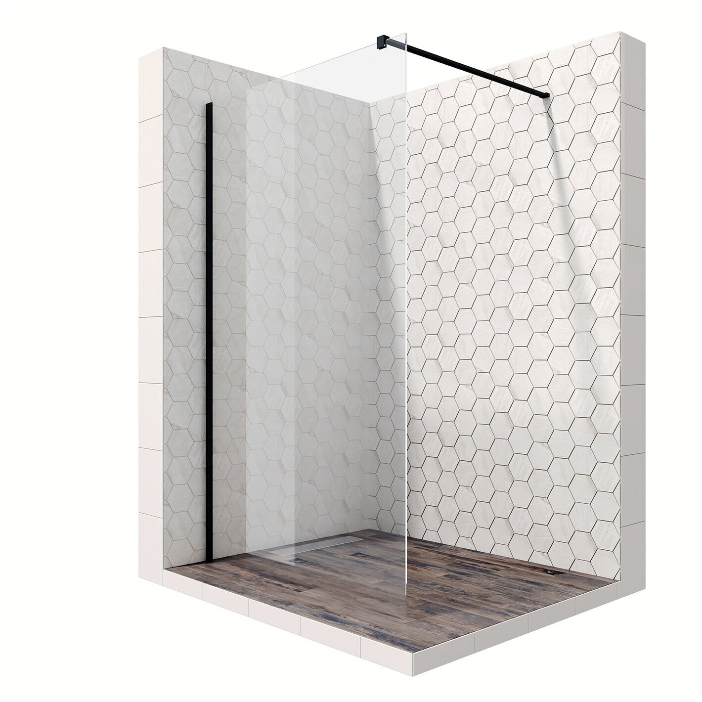 Душевая перегородка 90 см с трапом и свободным входом Ambassador Walk-in 15031109-ST15: душевая ширма из стекла 8 мм, профиль черный 35 636 ₽