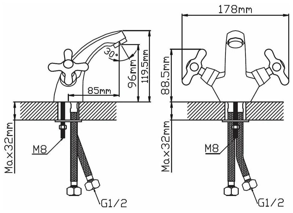Смеситель на раковину двухрычажный Potato, сатин информация: