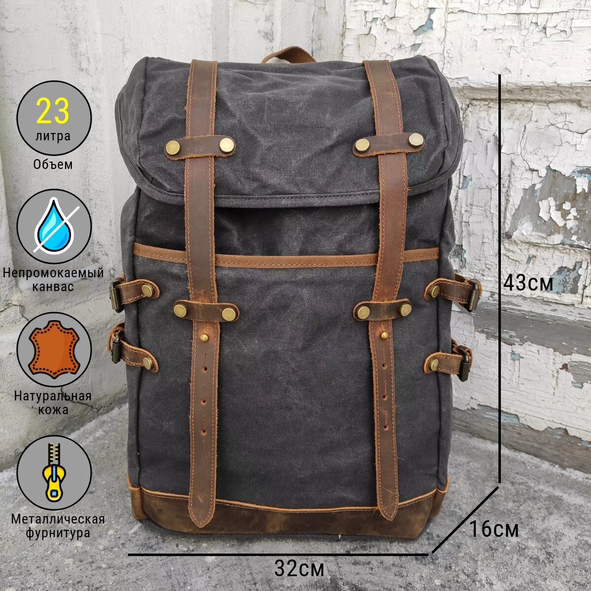Холщовый рюкзак мужской черный