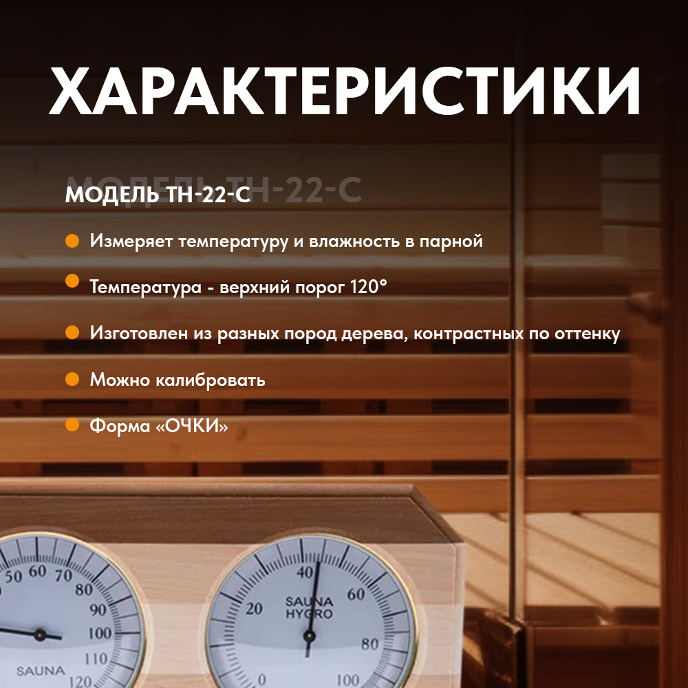 Термогигрометр для бани и сауны, ТН-22-T, термолипа, от 0°С до +120°С 3 930 ₽