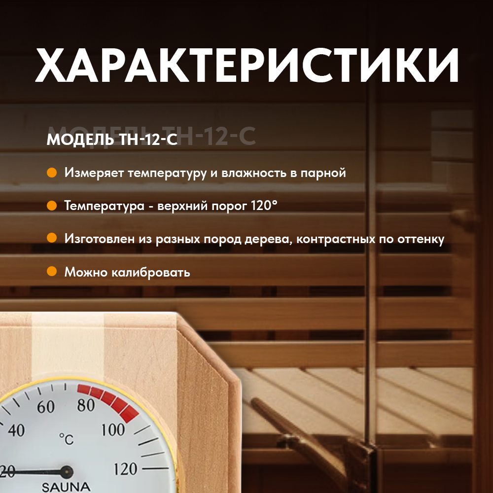 Термогигрометр для бани и сауны, ТН-20-L, липа, от 0°С до +120°С 3 930 ₽