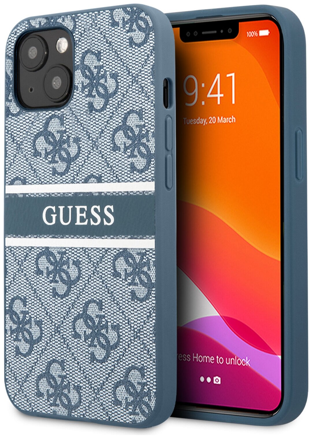 10 цен на Чехол Guess 4G PU LEATHER WITH PRINTED STRIPE для iPhone 13 mini, синий