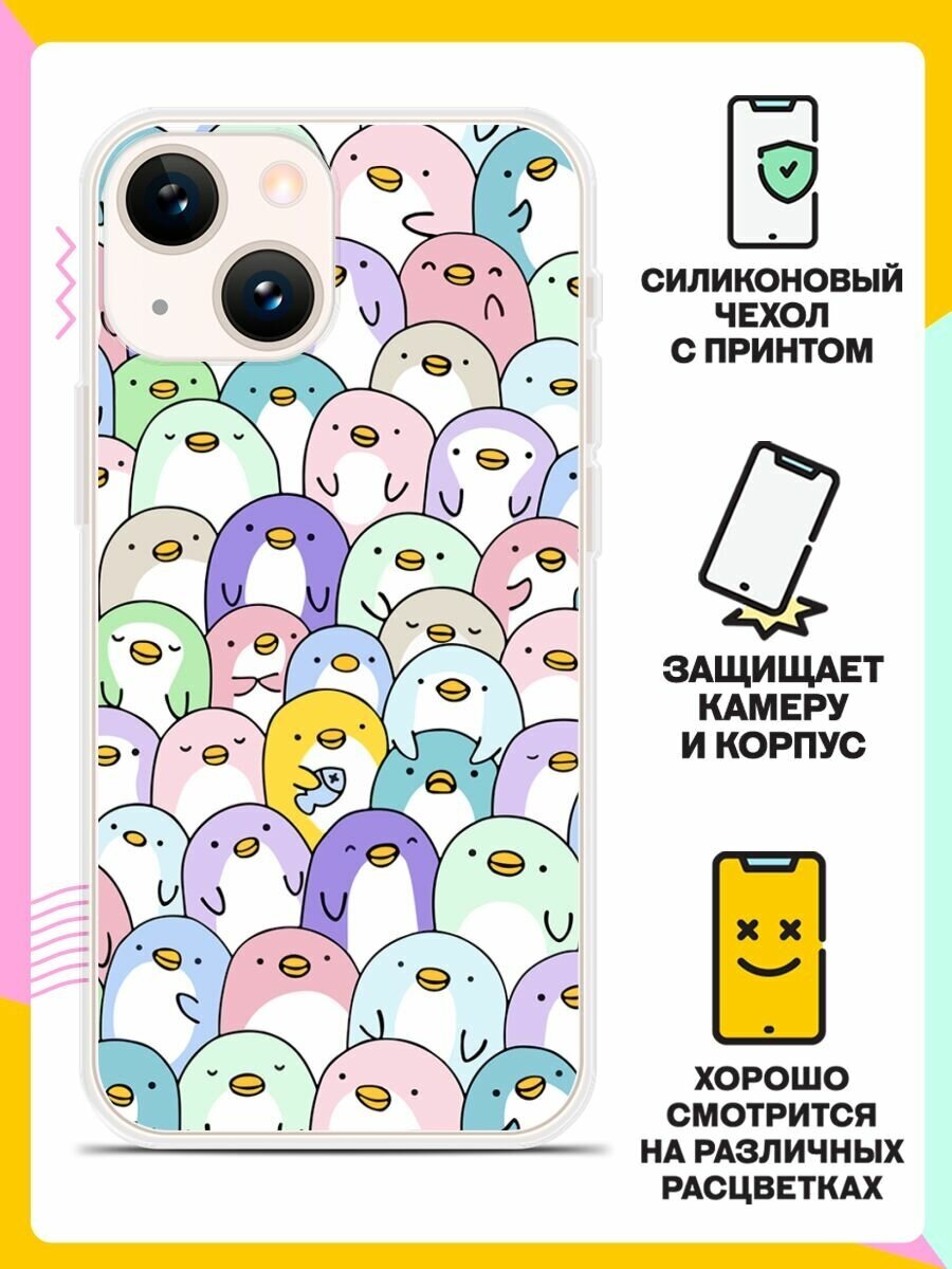 Отзывы на Силиконовый чехол на Apple iPhone 13 mini Пингвины с рыбой / для Эпл Айфон 13 Мини