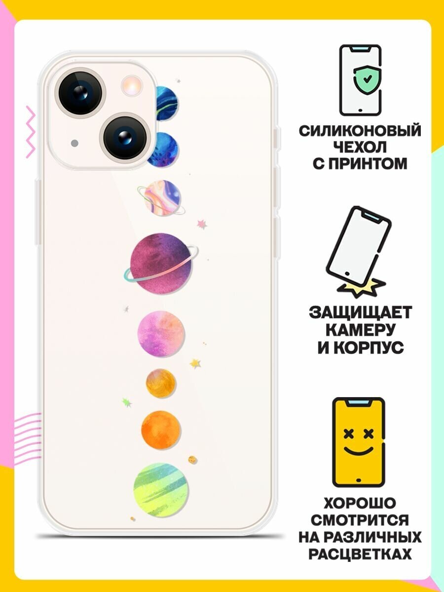 Отзывы на Силиконовый чехол на Apple iPhone 13 mini Планеты в ряду / для Эпл Айфон 13 Мини