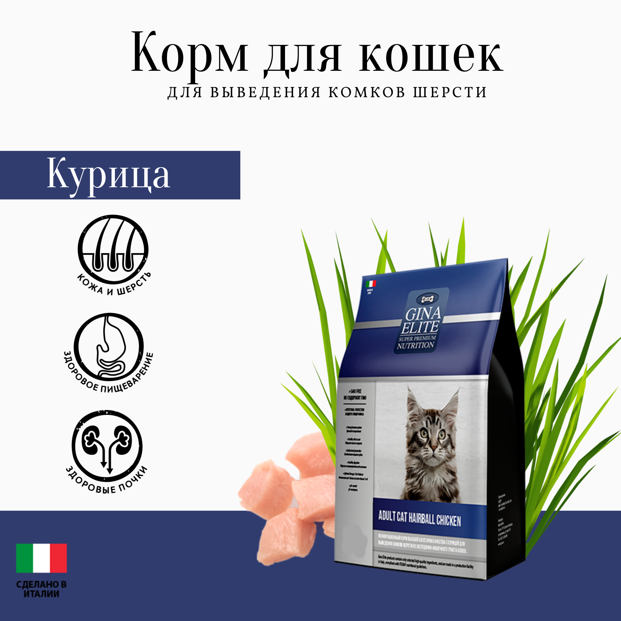 Gina корм для взрослых кошек с курицей для выведения комков шерсти (gina elite adult cat hairball chicken) информация:
