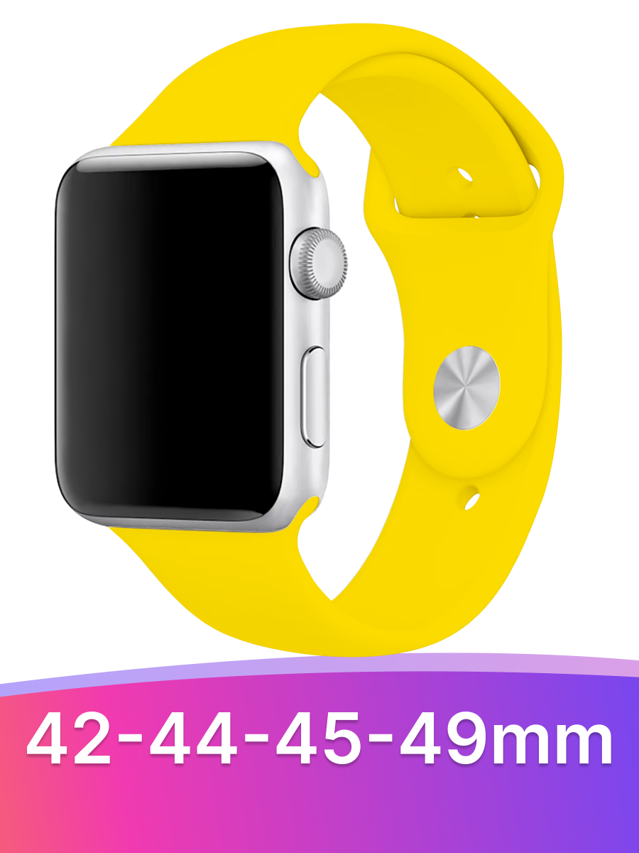 10 цен на Силиконовый ремешок для Apple Watch 42-44-45 mm, Series 1-7, SE / Сменный браслет (Sport Band) для смарт часов Эпл Вотч 42-45 мм (Yellow S)