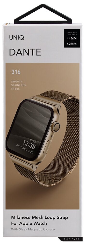 Uniq для Apple Watch All 45/44/42 mm ремешок Dante Strap Mesh Steel Gold информация: