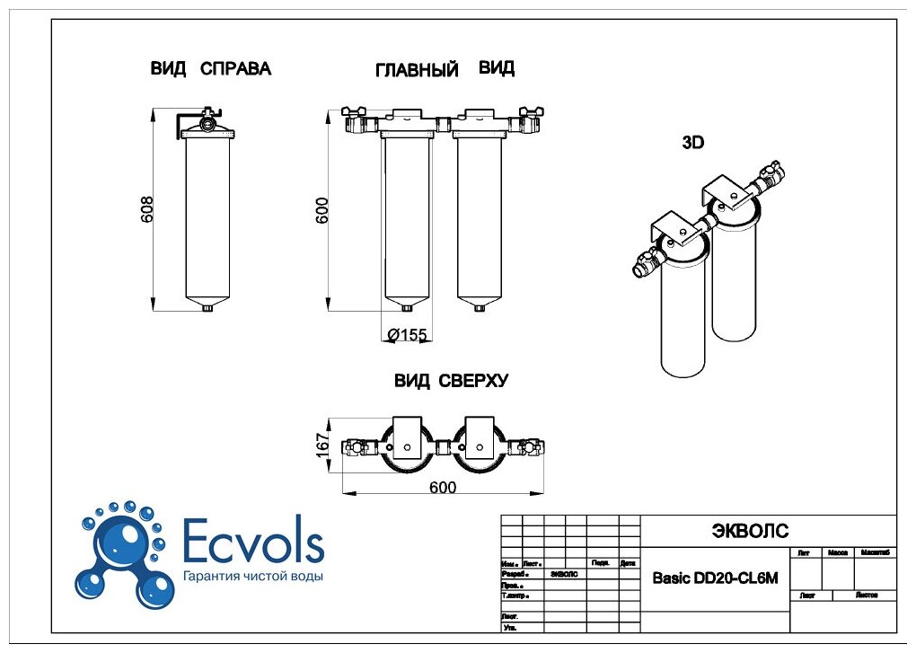Отзывы на Система очистки воды Ecvols Basic DD20 - C6, до 4 потребителей, Fe до 1, жесткость до 7, H2S: удаляет