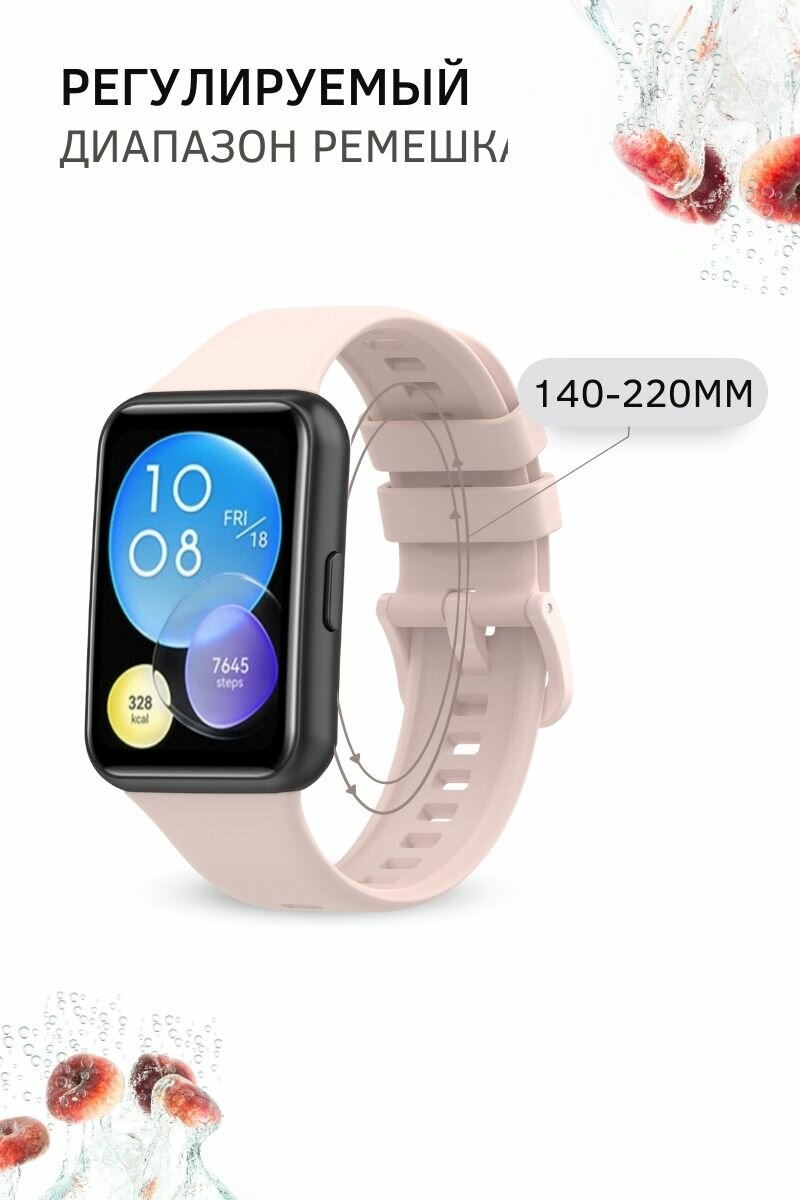 Ремешок для смарт часов Huawei Watch Fit 2, силиконовый, пудровый информация: