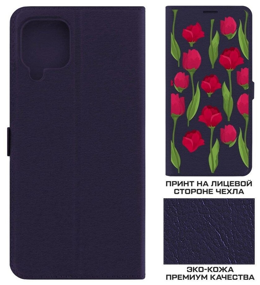 Чехол-книжка / Защитный кейс / Krutoff Eco Book для Samsung Galaxy M22 (M225) Розы паттерн (синий) информация: