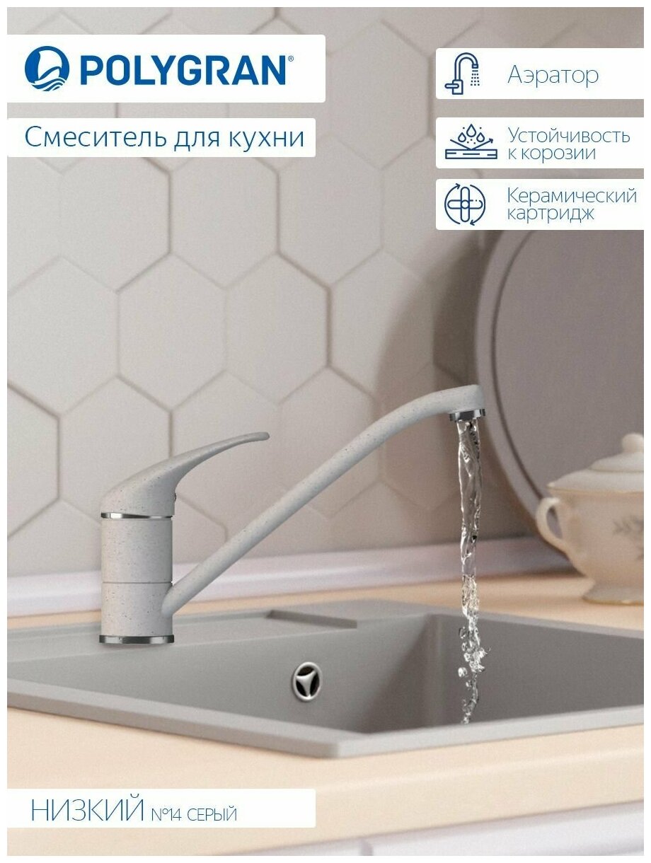 10 цен на Смеситель кухонный Низкий (№14 Серый)