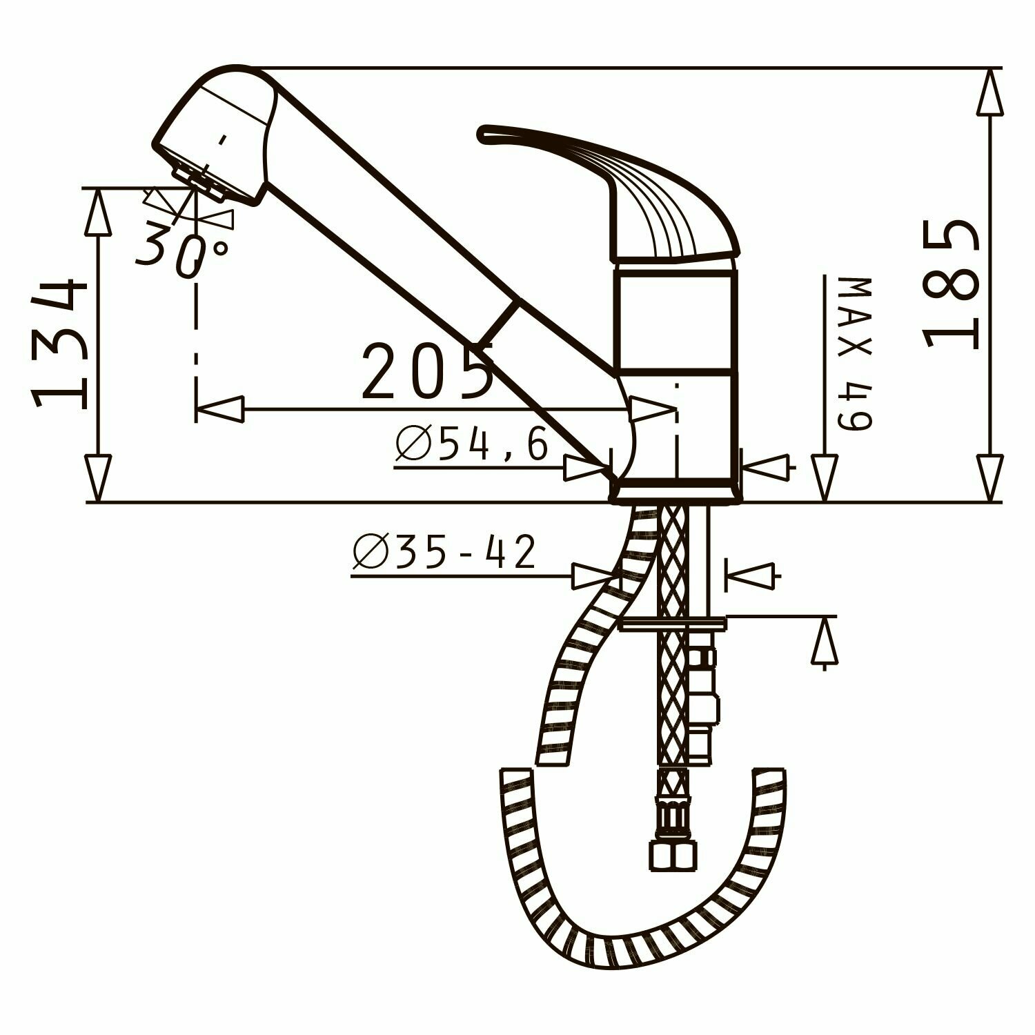 | Длина излива | 205 мм |