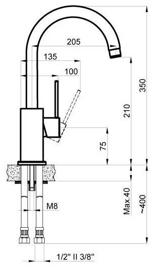 | Длина излива | 205 мм |