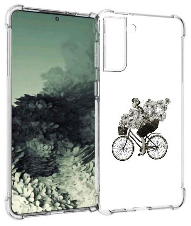 10 цен на Чехол задняя-панель-накладка-бампер MyPads девушка на велосипеде с цветами для Samsung Galaxy S21+ plus (SM-G996) противоударный