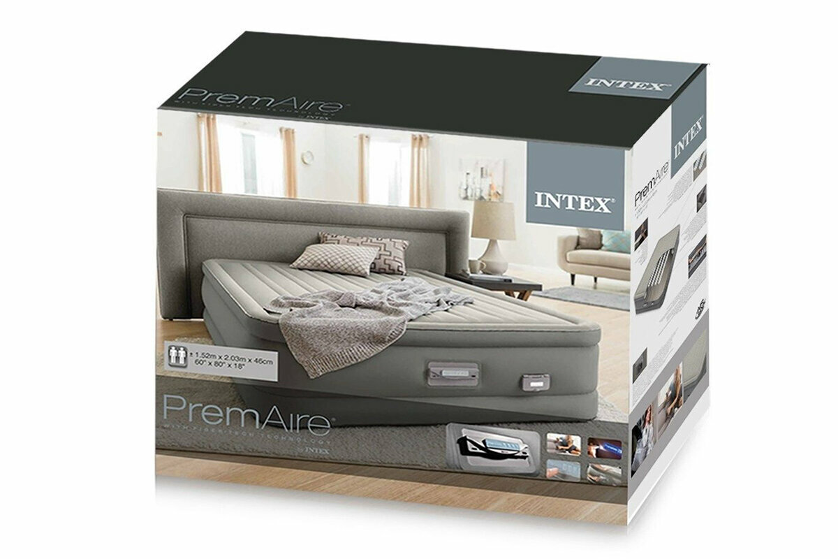 Двуспальная надувная кровать Intex 64770 PremAire Dream Support Bed + насос (152х203х46см)