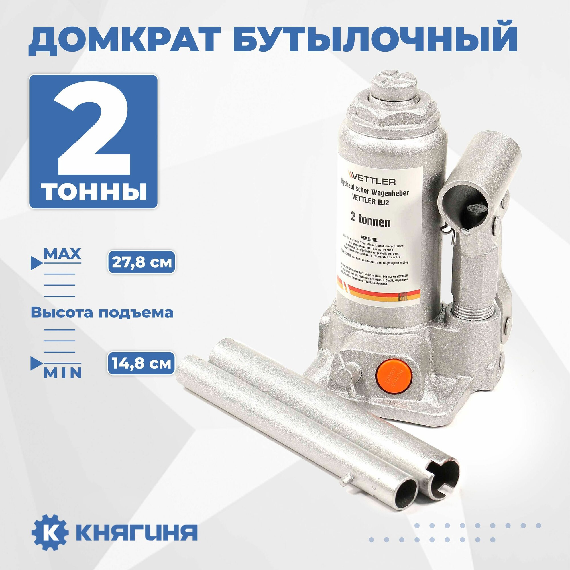 Домкрат автомобильный VETTLER VE BJ2 2 т бутылочный в кейсе информация: