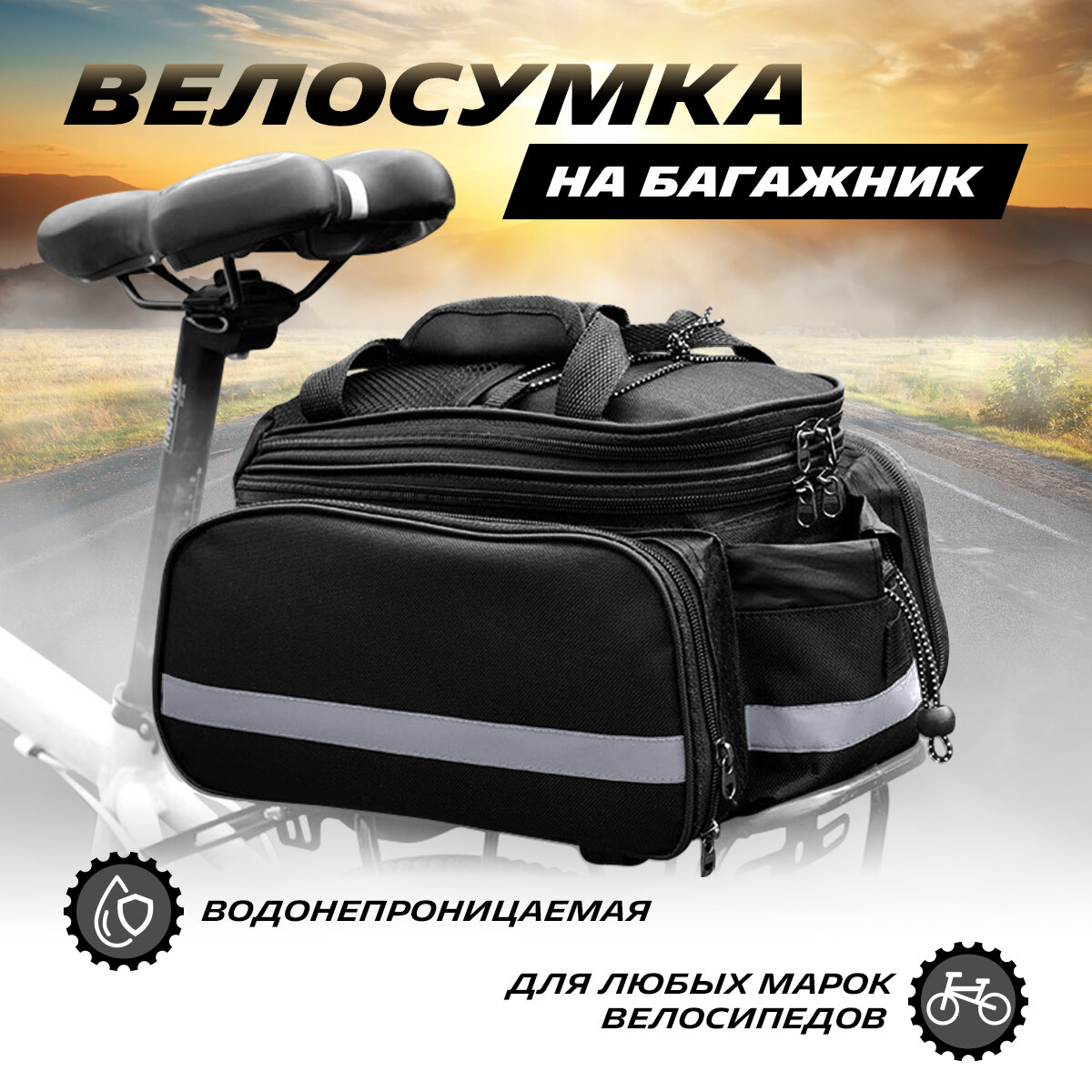 10 цен на Многофункциональная водонепроницаемая сумка на багажник велосипеда, переносная с ручками (черн), MoscowCycling MC-BL-01