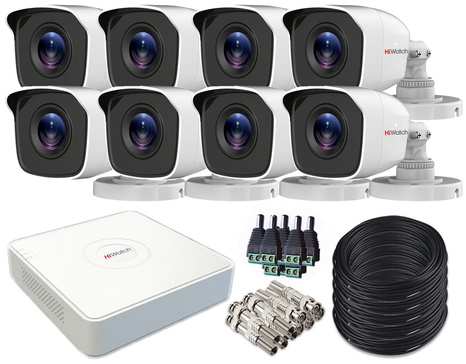 Комплект видеонаблюдения HiWatch HD-TVI 2МП на 8 уличных камер EXIR-подсветка