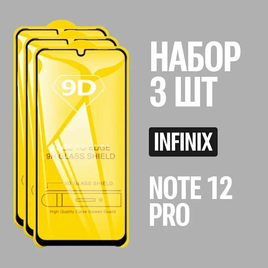 Защитное стекло для Infinix NOTE 12 PRO / комплект 3 шт. / 9D на весь экран информация: