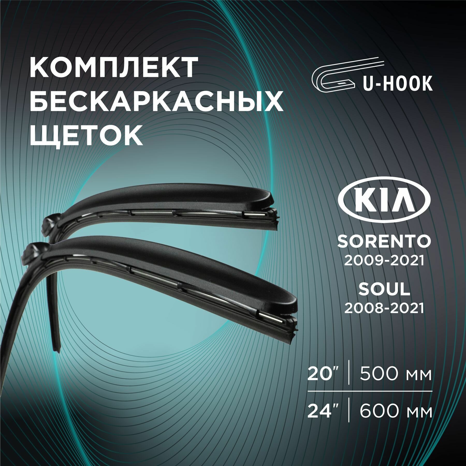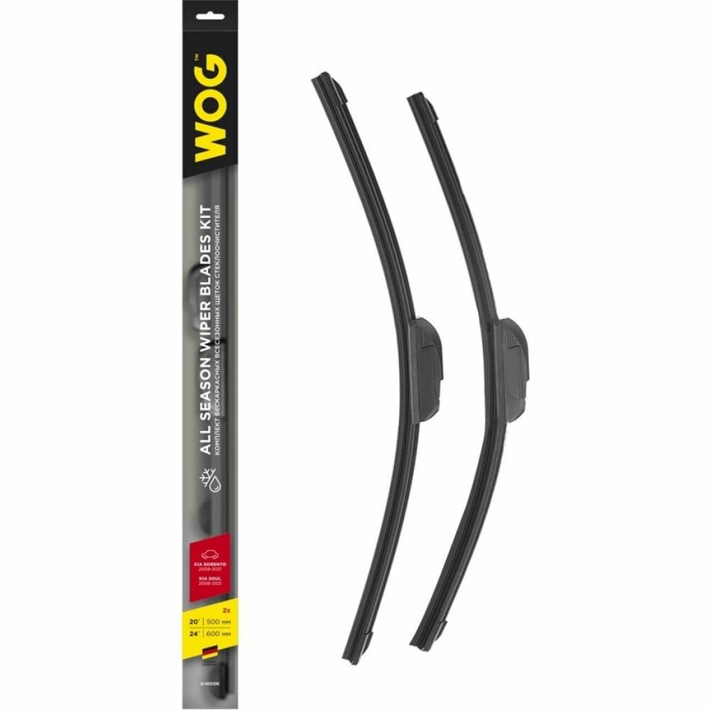 Комплект щеток стеклоочистителя, дворники автомобильные бескаркасные 600 мм/24"+500 мм/20" (KIA SORENTO/SOUL) с креплением "HOOK" WOG, 2 шт.