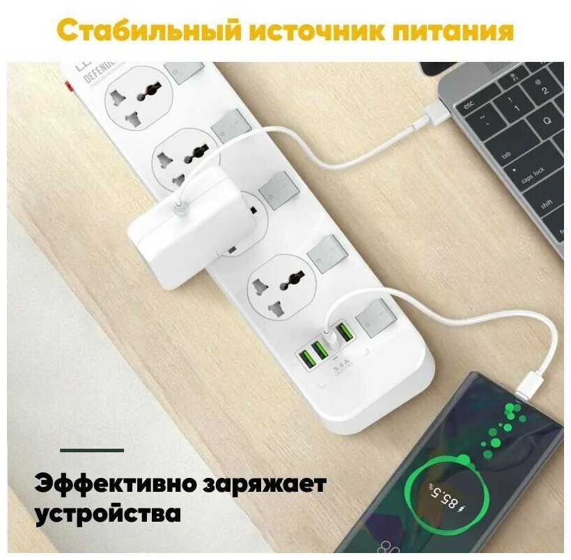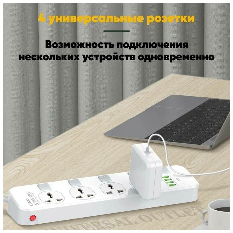 10 цен на Сетевой фильтр 2500W 4 розетки, 4 USB, 2 метра удлинитель, зарядное устройство
