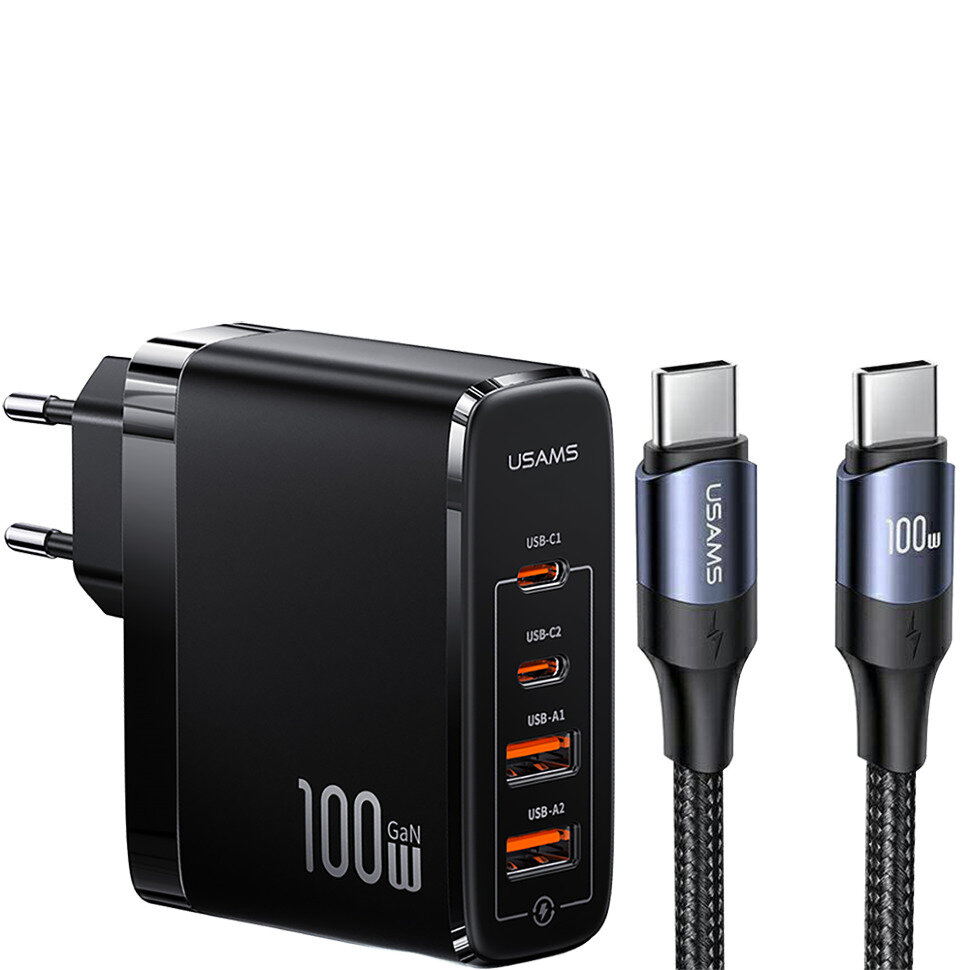 Usams Сетевой адаптер USAMS UCTZ01 T44 100W GaN Чёрный (+ Type-C кабель 1.2м)