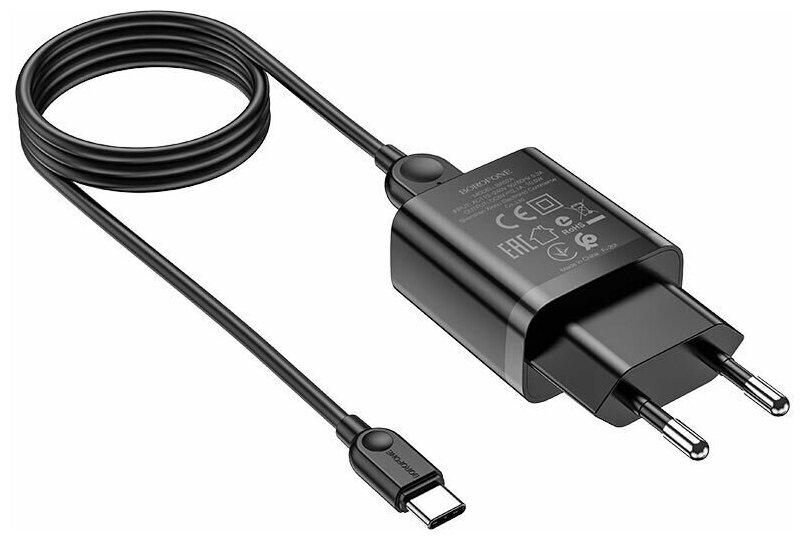 Зарядное устройство USB 5V-2.1A 10.5W с кабелем Type-C, адаптер сетевой, блок питания на Андроид информация: